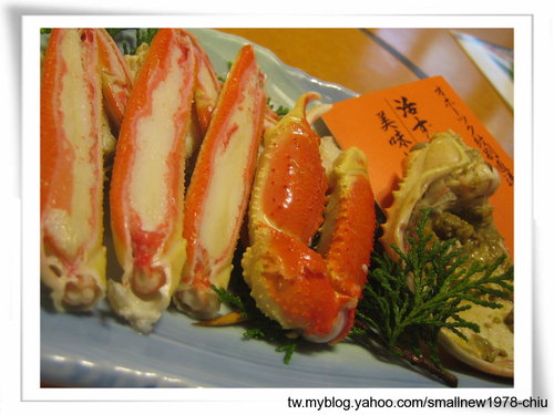 沒錯今天的晚餐就是かに大餐,首先登場的是~蟹角生魚片,口感軟綿綿的,有點給他不習慣說~